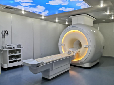 科室拥有7台高端磁共振成像设备,友谊院区5台,西咸院区2台,其中1.5T磁共振成像仪4台,3.0T磁共振成像仪3台,2022年新进引进的Ingenia 3.0T Elition磁共振,具有全身压缩感知成像技术、56000幅/秒的重建速度、80mT/m的梯度场强和200mT/m/ms的梯度切换速度,扫描速度快、图像解剖结构清晰、患者舒适度高等特点,除了进行全身各部位的MRI常规及高级功能检查外,还具有颅内血管壁高分辨成像、M-Dixon水脂分离和脂肪定量成像、APT(酰胺质子转移)成像、显微镜技术、LGE与mapping心肌特征分析等高端成像技术,标志着省医院磁共振诊断迈入了快速、精细、无创、安全的全新分子医学影像时代。