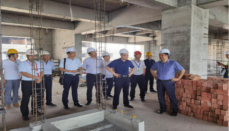 会后,高敬龙书记和马富春副院长在张长生副总经理和任柯副局长的陪同下赶赴医院项目建设现场,冒着酷暑详细察看医院项目建设施工情况,先后参观调研了业已建成的行政楼和医疗A区及正在紧张施工的医技综合区及门诊医疗区,亲自了解和沟通有关设计、施工及装修情况。高书记和马副院长两位领导同时看望了三级片