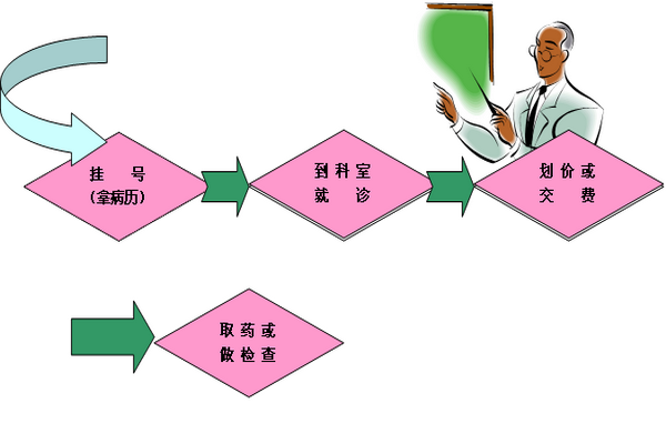1、门诊挂号、划价收费、取药在门诊大楼一楼大厅