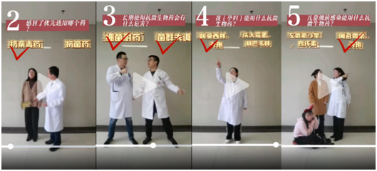 微信公众号和抖音平台播放,以欢快诙谐的方式向广大群众传播抗微生物药物知识,展现了省医药师的风采,同时增强了群众对药师群体的认识,有利于药师在今后的医疗服务中发挥更加重要的作用。