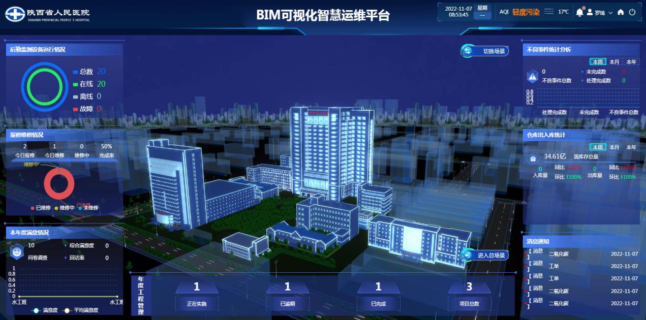 “智慧后勤一站式运维平台”的组建,将维修保障服务、物资供应服务、安全保障服务、设施设备运行监控和维保等服务通过物联网、大数据连接,实现了“可视化、数字化、精细化”管理,助力医院后勤管理水平和医院服务品质的提升,为智慧医院建设发展提供了有力保障。