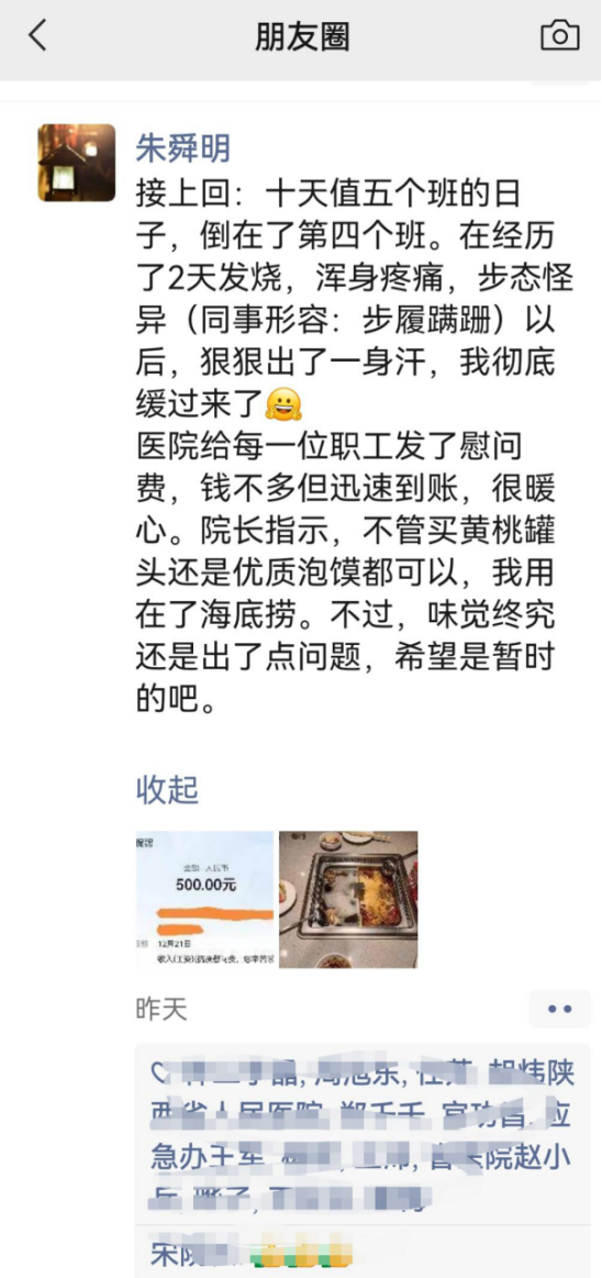 编者按:随着疫情政策调整,医院和医务人员在三年艰苦艰难的抗疫之后,此时可以说每一所医疗机构和每一名医务人员都面临最严峻的挑战。看看医院中当前战斗在最苦、最前沿的发热门诊、急诊抢救室的同志们的心声,同时编者也通过朋友圈,看看医务人员艰苦、坚强、坚韧而又充满革命乐观主义精神的坚守,向他们致敬!