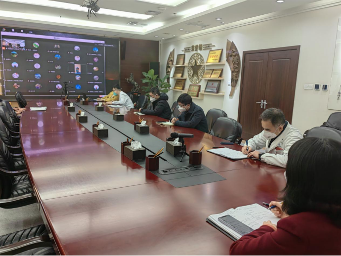 紧急召开“疫情医疗救治重点部门工作推进协调会”,张玉莲书记、宋张骏院长等班子成员及重点部门科室主任现场及线上参会,医务处张小玲处长主持。