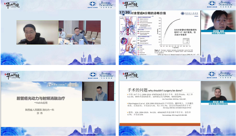 消化内一科宗伟副主任医师、郭雪艳副主任医师分别做《胆管癌光动力及RFA治疗-Habib的应用》《环扫超声内镜对食管癌分期的诊断价值》学术报告。此外,西京医院消化科郭长存、任贵教授,交大二附院消化科赵刚、马师洋教授,交大一附院肝胆外科陶杰、郝杰、杨雪教授,以及西安市第三医院消化科张超教授等分别就ERCP及EUS国内外新进展做了精彩讲座及病例分享,来自省内各大医院的ERCP及EUS同道在线做精彩的主持与点评。