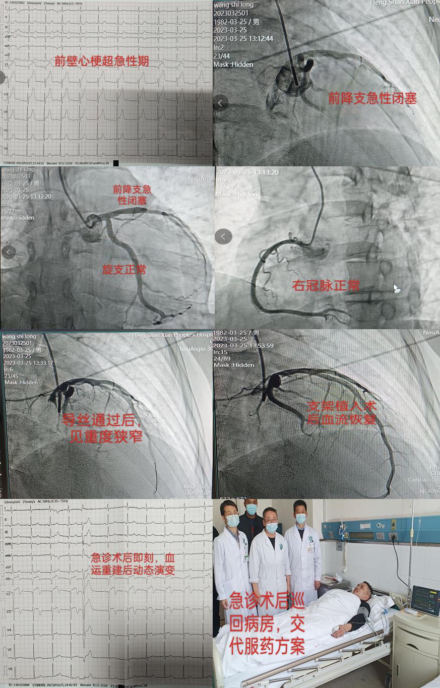今年派驻横山区人民医院对口帮扶的心血管内二科尤红俊主治医师和麻醉科朱利娟主治医生,火速行动,立即与横山区人民医院领导及患者外地家属进行电话沟通,迅速建立抢救团队,快速开通胸痛患者救治绿色通道,患者同事进行授权签署手术同意书后即进行冠脉造影及支架植入术,迅速开通闭塞前降支,手术安全平稳开展,术后恢复良好。患者对三级片