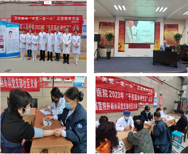 肝胆外科、检验科、产科联合走进碑林区西荷花园社区开展义诊活动。肝胆外科党支部书记张煜主任医师、宋勇主任医师、仵晓荣护士长、刘艳玲护师、检验科党小军副主任、李小侠副主任技师及产科黄晓娟医师共8名人员参加,共接诊150余名社区居民。