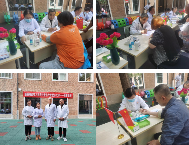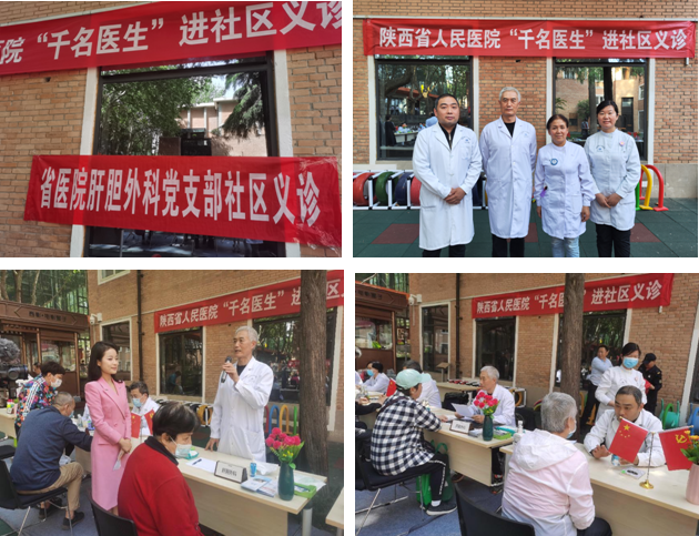 4月16日下午,肝胆外科党支部积极响应医院“千名医生进社区”活动要求,利用周末时间走进雁塔区西影社区开展义诊活动。在杜立学主任带领下,耿西林副主任医师、仵晓荣护士长、陈昕主管护师共4名人员参加,接诊了100余名社区居民。