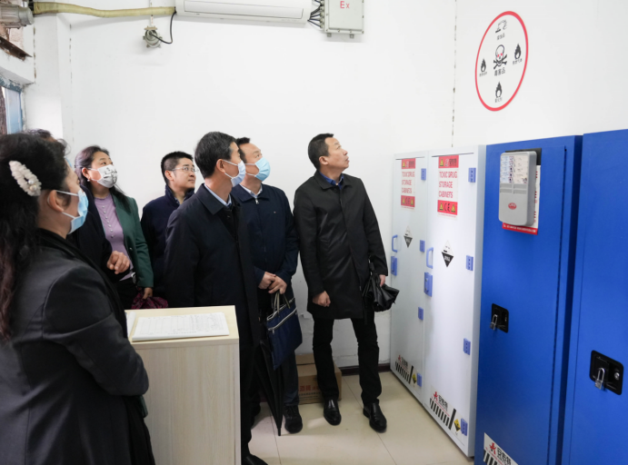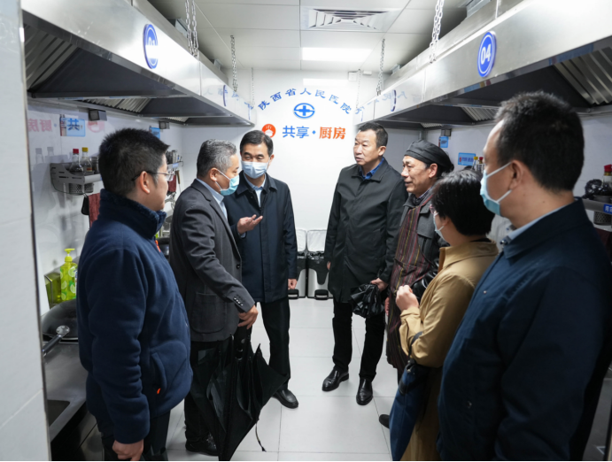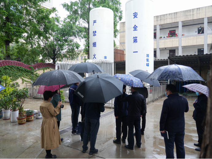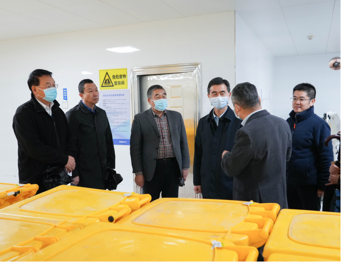 省卫健委党组书记、主任张军林一行实地查看医院监控中心、消防应急中心、医院消防队、医疗废物处理中心、共享厨房、有毒有害易燃易爆物品存放室、氧气站、门诊大厅,现场询问工作及管理人员日常工作流程和制度,查看记录表格,实地详细查看问题、排查隐患。