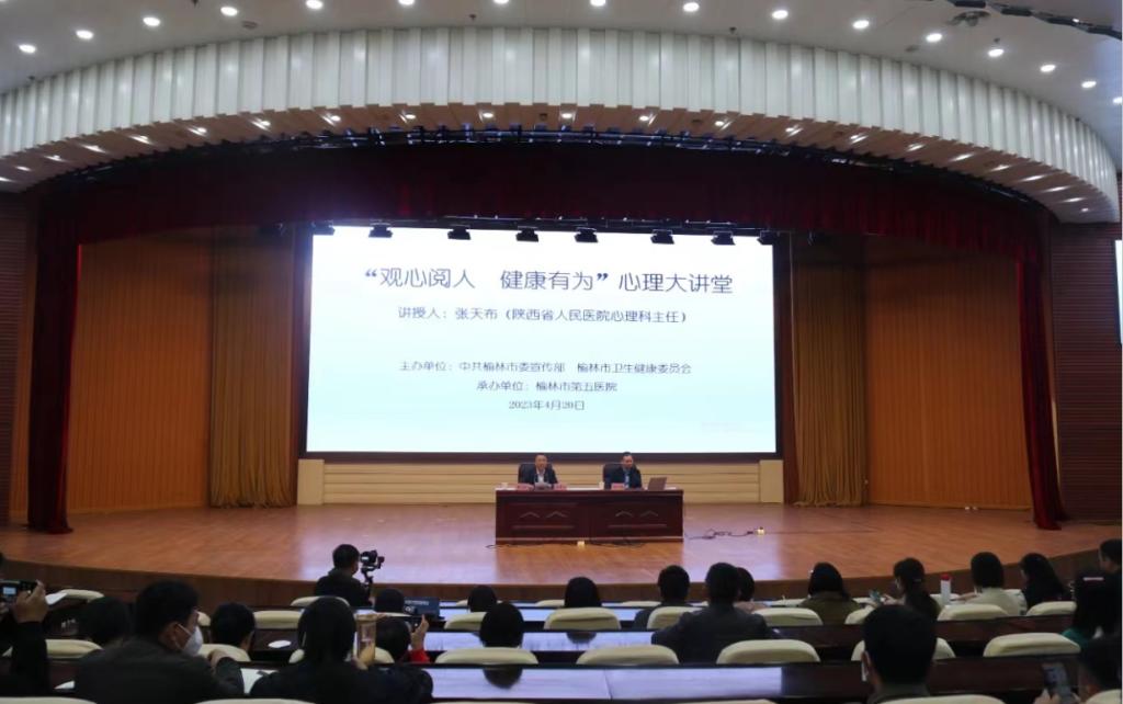 4月20日下午,张天布主任在“健康榆林大讲堂”,以“观心阅人 健康有为”为题,为500余名干部职工就心理学如何在生活和工作中应用,不同文明发展阶段的时代心理特征、当下时代的心理症结--“焦虑”的心理分析、心理调适的两个抓手:“悟”和“修”等方面详细阐述了心理现象发生的原理和机制。