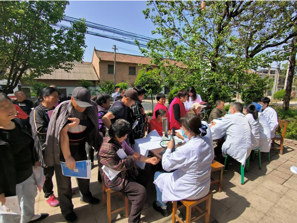 活动现场,村民络绎不绝,医护人员为老年人免费测量血糖血压、进行肌肉放松治疗、查看体检报告,并结合村中老人生活习惯,围绕卫生安全、伤害预防、自我保健、康复护理、膳食营养、运动健身等老年群体常见问题,给予合理用药以及治疗建议,叮嘱大家定期体检、注意健康饮食、适当运动、养成良好的生活习惯和正确的就医观念,提高健康生活质量。同时,耗材试剂部技师折婵向附近村民发放医院宣传资料,解读国家集采惠民政策以及三级片