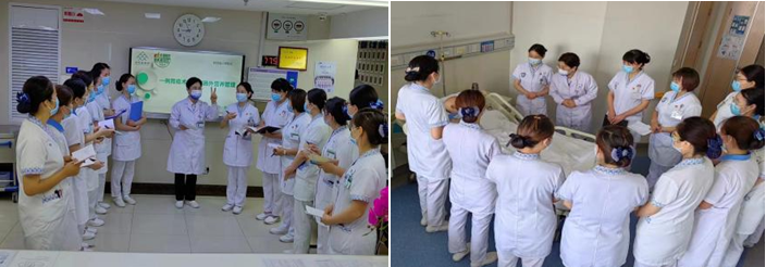 三、进行全民营养周热身,在内分泌糖尿病病院,营养护理小组、临床营养科联合开展5.11世界肥胖防治日患教会,主题为“远离肥胖,关爱健康”。李宇菲等营养护士为患者及家属授课、答疑解惑。