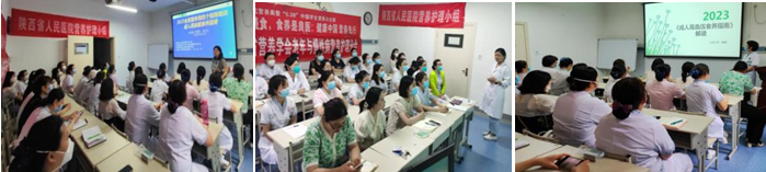 5月17日下午,针对营养护理小组成员、科室骨干护士,举办新发布的“成人高脂血症食养指南2023版”等4个新指南的解读与培训会,受众60余人。