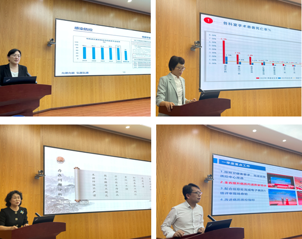 法务处高庆丽副处长、院感办李连香副处长、医务处李晓晴副处长、病案科苏晓东主任分别对一季度医疗纠纷、院感管理、不良事件、病案质量情况向委员会进行了汇报,分析存在问题并提出改进措施。