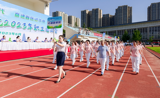“携手逐梦新时代,奋进省医谱华章”——2023年职工运动会在西安体育学院火热举行。省卫生健康委员会党组成员、副主任、一级巡视员赵岚,院领导班子成员出席,全院28支参赛代表队及观赛职工等1200余人参加。大会由副院长王建华主持。