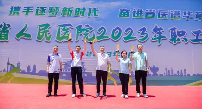 闭幕式上,院领导分别为获奖队伍颁奖,并合影留念。副院长王建华在闭幕词中表示,本次运动会的成功举办,离不开医院各处室、各科室的大力支持以及全体运动员、裁判员、工作人员的共同努力。希望大家继续保持和发扬“赛出水平,赛出成绩”的高昂斗志,脚踏实地、拼搏进取,为省医更加美好的明天而努力奋斗!