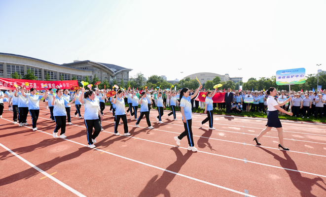 上午8点,伴随着运动员进行曲,国旗护卫方阵踏着激昂的旋律,庄严入场。彩旗方队、裁判员队、各运动员代表方队依次走过主席台接受检阅,气势昂扬、朝气蓬勃。武术、太极、啦啦操等独具特色的方队表演引来一波高潮,热情的表演、矫健的步伐展示着省医人奋发有为的新时代风采。