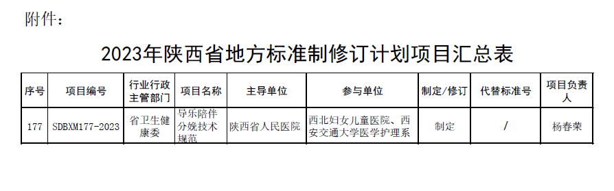 产科牵头申报的《导乐陪伴分娩技术规范》获批立项。