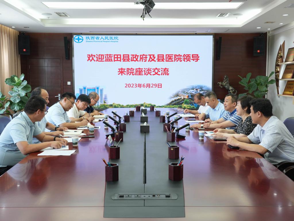 6月29日,蓝田县政府何勇副县长、卫健局费公海局长、县医院杨西武院长等一行5人来院交流帮扶事宜。宋张骏院长、王建华副院长、医务处张小玲处长、基层医疗服务部王建军主任出席座谈,会议由张小玲处长主持。