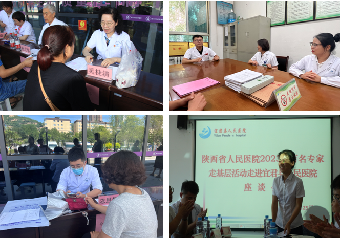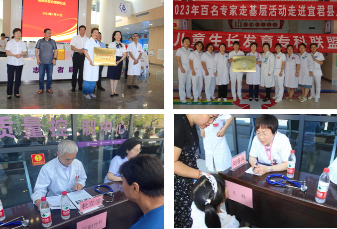 医联体成员宜君县人民医院、协作医院铜川市妇幼保健院、铜川市人民医院、照金人民医院等医院领导对医院党建引领、学科共建、科研共享、管理轮训、双向转诊、信息化建设等方面进行深入座谈交流。各位主任深入各区县医院相关科室与科室主任就学科共建进行一对一交流,并对10余名疑难患者进行会诊,科与科之间建立起顺畅的转诊通道。在铜川市妇幼保健院举行了义诊。在宜君县人民医院与对口帮扶医疗队队员进行了亲切座谈,了解队员生活、工作情况,并听取队长徐晶的工作汇报。在照金人民医院,刘春风主任为医院医护人员、照金镇村医讲授《儿童正常生长发育及异常识别与防范》,培训医务人员20余人次。在铜川市妇幼保健院举行了协作医院授牌仪式,三级片
