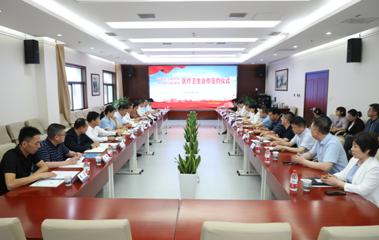 基本概况及“一院两区”建设情况,从优质资源下沉、医疗资源共享、双向转诊等方面介绍帮扶举措。随后,院长宋张骏与丹凤县县长吴春亮签订医疗卫生合作协议书。