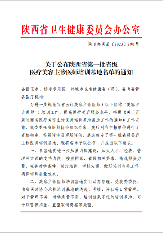 成功获批陕西省首批美容外科主诊医师培训基地!
