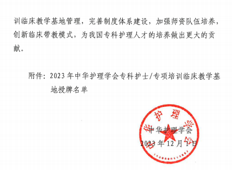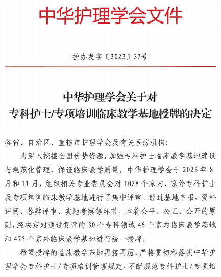 近期,中华护理学会发布《关于对专科护士/专项培训临床教学基地授牌的决定》文件,正式授牌三级片
