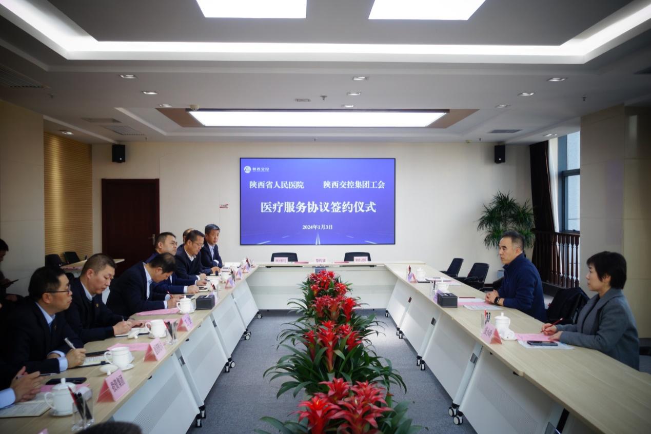 健康社区医疗服务工作,在各单位进行了座谈交流。陕西省测绘局陈向阳副局长、西安音乐学院郭强副院长及陕西交控集团党委副书记、总经理黄会奇等各单位领导班子和相关负责人参加座谈。