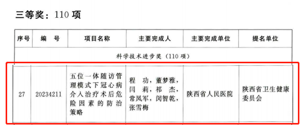 刘仲伟博士团队“苦参素对糖尿病相关心功能不全的治疗作用及机制研究”、张文主任医师团队“中耳内耳疾病的精准微创治疗新技术研究应用与推广”获得二等奖,程功主任医师团队“五位一体随访管理模式下冠心病介入治疗术后危险因素的防治策略”获得三等奖。