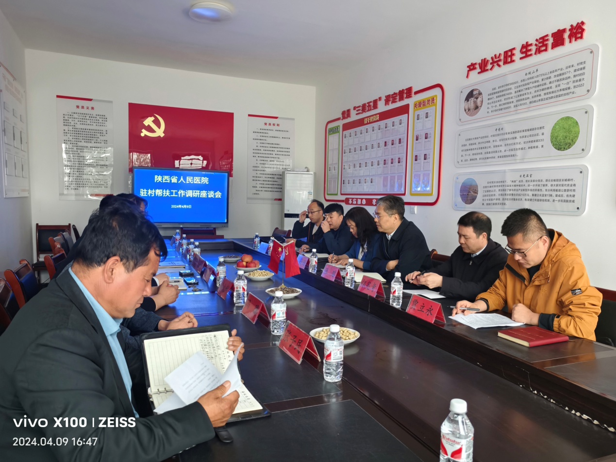 接着,张路副书记一行来到了水掌村村委会,与区镇两级领导、村干部、驻村工作队员等就驻村帮扶工作进行座谈。适逢新老驻村第一书记进行交接,即将离任的驻村第一书记贾立永对两年来驻村帮扶工作进行汇报,新的驻村第一书记周定永进行表态发言。村主任、镇书记先后发言感谢省医院近年来对水掌村在基础设施、环境改善、产业项目及对赵石畔镇小杂粮加工厂消费帮扶等多方面实实在在的帮扶,通过帮扶不仅使水掌村旧貌换新颜,而且惠及赵石畔镇集体经济发展,得到了当地群众广泛认可。省卫健委挂职横山区委副书记李刚也代表横山区委、区政府对省医院长期以来发挥优势,利用资源,真真切切地对水掌村、赵石畔镇在基础设施、产业、医疗、小杂粮加工厂的各项帮扶,积极配合两委班子推动村、镇经济发展和社会进步做出的贡献予以高度肯定并表示感谢。最后张路副书记讲话,他对医院驻村工作取得的成绩给予肯定,对驻村队员的辛苦付出表示感谢,并对区、镇、村各级驻村干部工作和生活上提供帮助表示感谢。他对驻村队员提出五点要求:一要提高站位,加强学习。二要尽快进入角色,走村入户访村情民情。三要夯实责任,扎实推进各项驻村帮扶工作。四是加强联络沟通,做好医院和区、镇、村的桥梁纽带。五要严格驻村纪律,踏实工作。