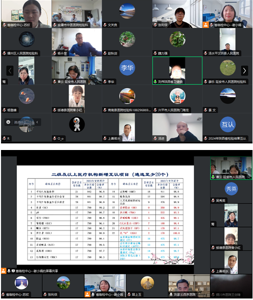 陕西省临床检验中心、陕西省检验医学质量控制中心组织了2024年全省检验结果互认扩项和实施方案专题线上讨论会,根据全国检验结果互认工作开展现状,结合本省实际情况,对拟新增的互认项目和实施方案进行讨论。省卫健委医政医管局刘伟副局长、三级片
