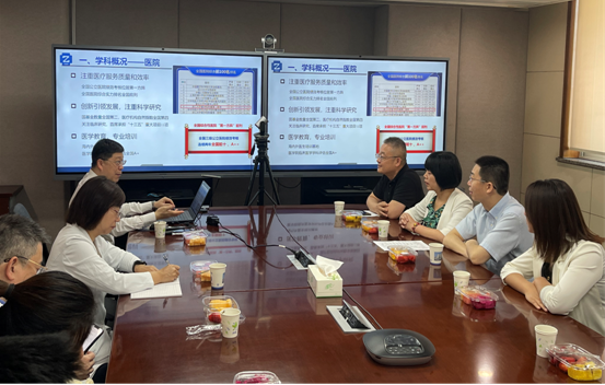 浙大二院神经外科陈高主任及科室相关人员在行政会议室进行了热情的接待并召开座谈会。首先陈高主任详细介绍了浙大二院神经外科的发展历史、目前科室设置、业务发展及亚专科建设情况,如何做到紧邻上海提升手术的量和质,如何大力发展临床科研并做到数千万的临床科研成果实体转化,如何顺应公立医院绩效考核、DRG时代下科室业务发展方向及趋势、科室人才梯队建设等,内容详实客观,对三级片