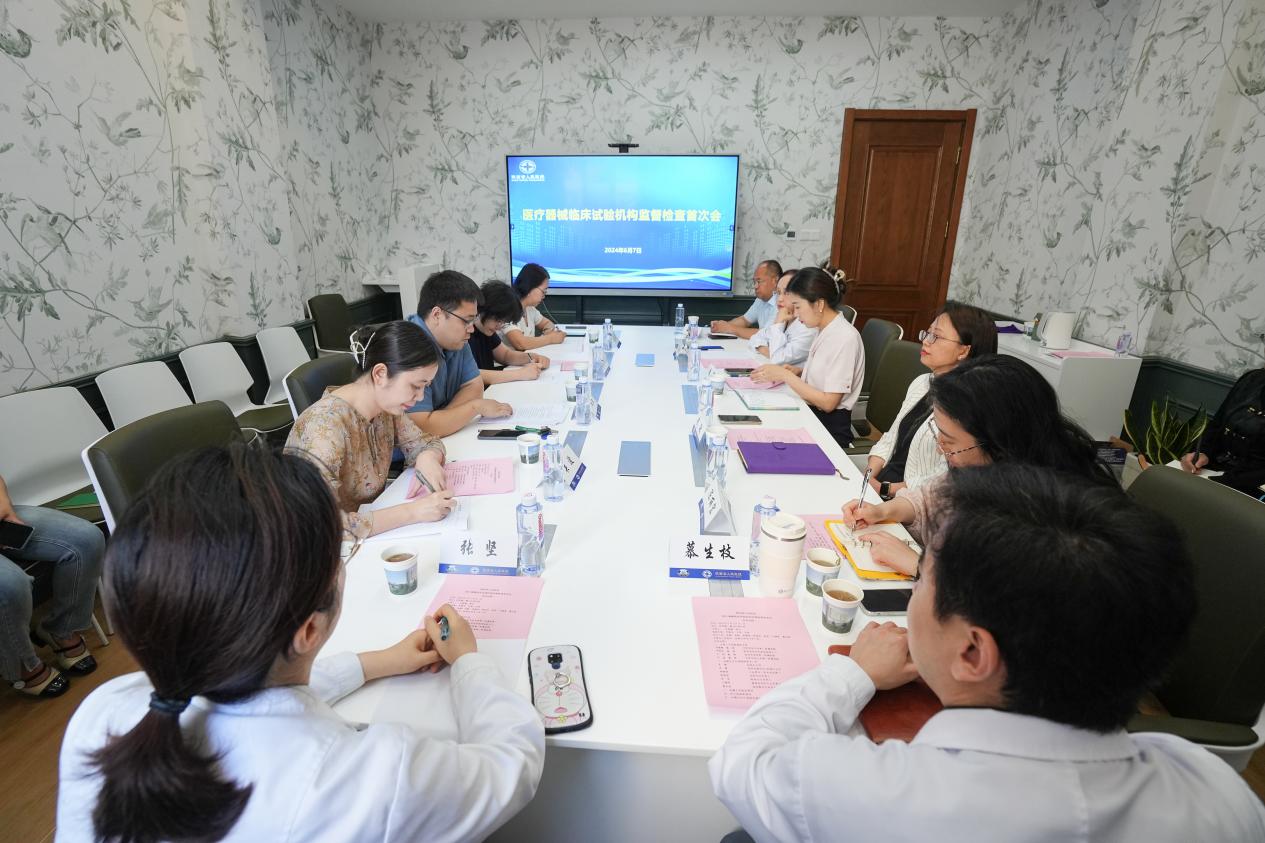 医疗器械临床试验机构实施日常监督检查。机构办朱娜副主任、伦理办武敏主任、心血管内二科专业组PI寿锡凌主任、康复医学科专业组PI王继军主任、烧伤整形外科专业组PI慕生枝主任、妇科专业组Sub-I李玢副主任、眼科专业组Sub-I杨乐副主任及相关工作人员陪同检查。