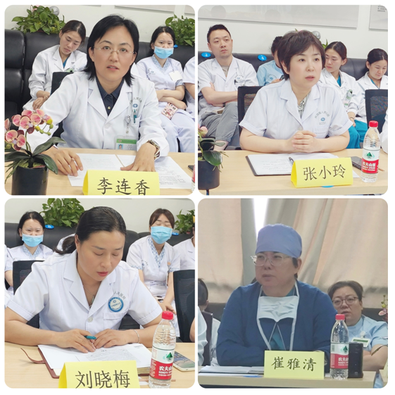 2023年度发生职业暴露的人群职业分类、科室分布、病原体分类、发生地点,分析发生的原因并提出整改措施,强调了演练的目的和必要性。张小玲处长、刘晓梅副主任、手术室崔雅清总护士长分别进行点评并提出整改建议。