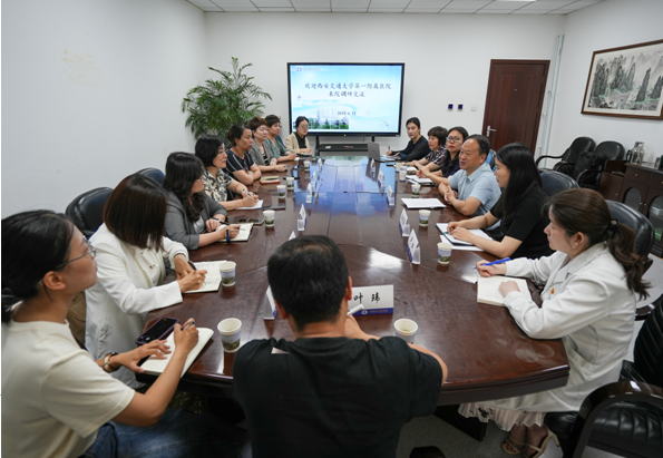 6月13日上午,西安交通大学第一附属医院财务部部长赵朝一行9人来院调研交流。三级片 财务处周旭东处长、余俊英副处长、田斐副处长、卢虹副处长、李薇科长及科室业务骨干参加会议。会议由周旭东处长主持。