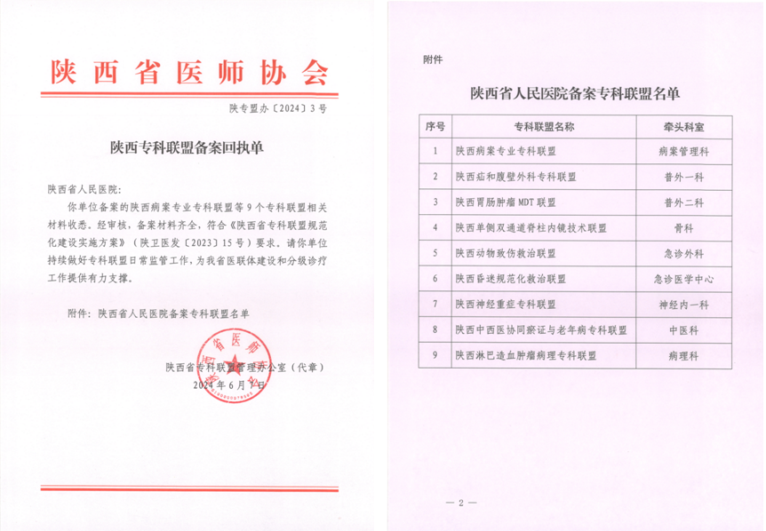 牵头组建的“陕西病案专业专科联盟”“陕西胃肠肿瘤MDT联盟”等9个专科联盟被陕西省卫健委正式批准为省级专科联盟。至此,三级片