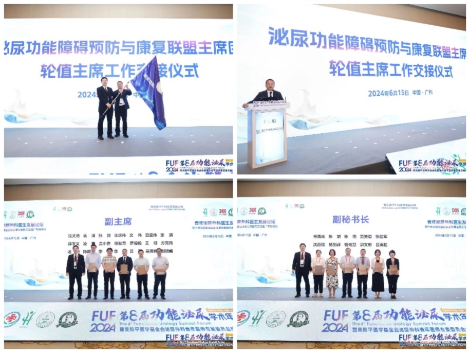大会公布了吴阶平医学基金会第一届泌尿外科青年医师专家委员会名单,孙羿主任被聘为第一届副主任委员,陈娟副主任医师为青年泌尿外科医师发展专项基金管理委员会组员。同时成立了泌尿功能障碍与康复联盟主席团,孙羿主任担任联盟副主席,陈娟副主任医师担任联盟副秘书长,并共同参与了2024世界尿失禁周尿失禁防治“荧光行动”科普主题朗诵活动。会上还进行了泌尿功能预防与康复联盟主席团轮值主席工作交接仪式,孙逸仙纪念医院黄海教授将主席团轮值主席工作移交三级片