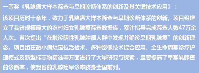 宋张骏院长主持完成的“乳腺癌大样本筛查与早期诊断体系的创新及其关键技术应用”荣获陕西省科学技术进步奖一等奖,并上台领奖。