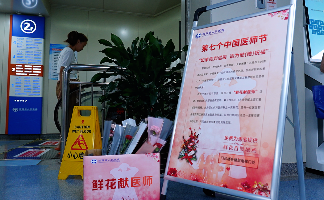 8月19日是第七个“中国医师节”。为了庆祝医师节,提升医生职业荣誉感,促进医患间互相理解、互相信任,在院领导指导下,医务处策划了一场特别的“送鲜花”活动。活动以“‘如果感到温暖,请为他(她)祝福’”为主题,在医院主院区和西咸院区的门诊大厅里,放置供患者免费使用的1000支康乃馨。患者如果在就诊当天对医生的服务感到非常满意,即可通过一束鲜花向辛勤工作在医疗一线的医师们表达敬意和祝福。