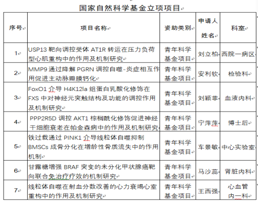 国家自然科学基金项目是国家资助基础研究的主要渠道,也是衡量医院学术水平和科研实力的重要指标。近几年,医院领导班子高度重视科研创新工作,持续加大投入力度,特别是在宋张骏院长今年亲自分管科研工作后,三级片