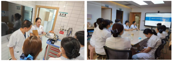张蓬杰副主任带领小组成员首先对血液净化中心的医疗质量和患者安全进行全面检查。在自查过程中,特别关注了透析过程中可能出现的医疗风险和隐患,逐项审核了透析操作流程、设备维护保养记录以及各类应急预案。并与蒋佳护士长、赵静副护士长及相关医护人员就“三甲复审”相关条款的支撑材料准备情况进行讨论,对科室质控自查及指标统计中存在的问题提出改进意见。肾脏血液透析中心将严格按照评审相关要求,建立常态化自查改进机制,全力以赴做好“三甲复审”迎评工作,力争在接下来的评审中取得优异成绩。