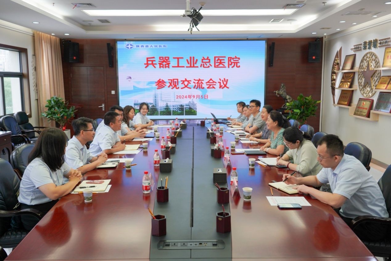 与会双方分别对参会人员进行介绍,院办张真妮主任欢迎兄弟单位来访,并就三级片 基本情况、历史沿革和发展现状进行介绍。张主任表示,两院作为近邻,希望以此次交流为契机,密切合作,互通有无,携手并进,共同促进医院高质量发展。周勇处长介绍了兵器工业总三级片概况 ,表示省医院是我省的龙头医疗单位,希望通过此次对标学习,创新管理理念,不断提升自身服务水平和综合实力,顺利通过医院三甲评审工作。