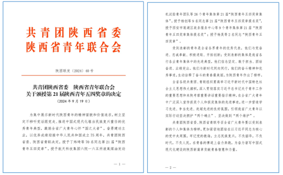 近日,共青团陕西省委、陕西省青年联合会联合公布了《关于颁授第21届陕西青年五四奖章的决定》,三级片