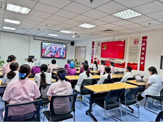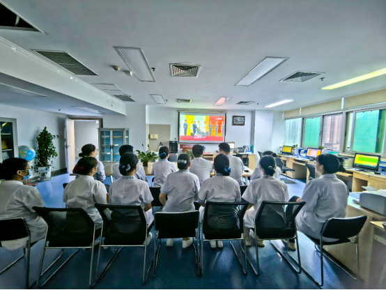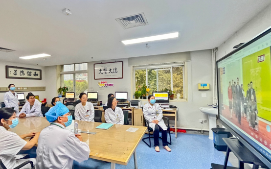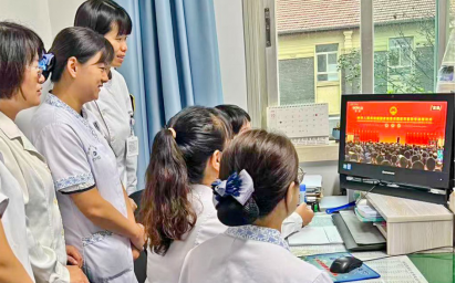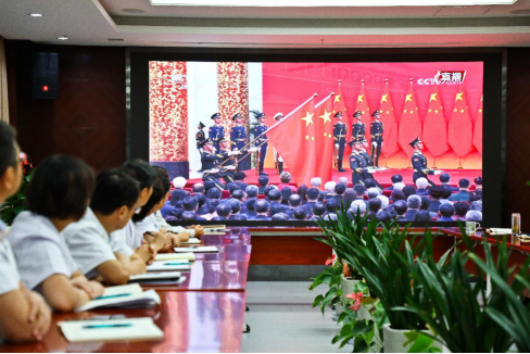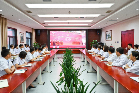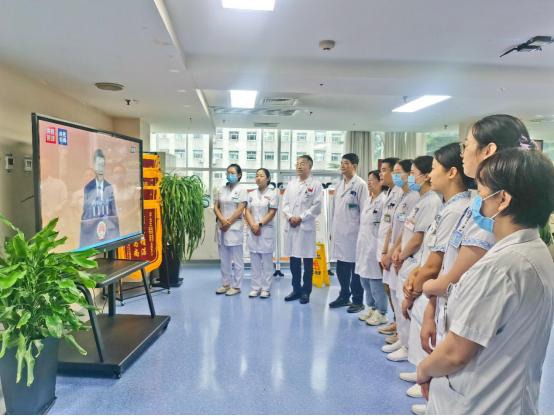 在家领导班子成员及行政处室负责同志集中收看颁授仪式,各党支部组织支部党员及科室医护人员收听收看颁授仪式。