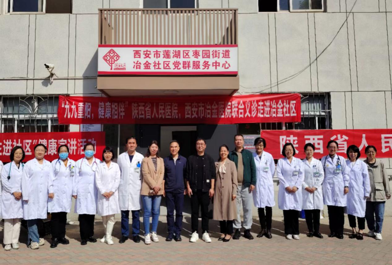 专家在王建华副院长带领下,联合协作医院--西安市冶金医院走进西安市莲湖区枣园街办冶金社区,开展“九九重阳、健康相伴”为主题的关注老年人健康义诊活动。活动把三级片