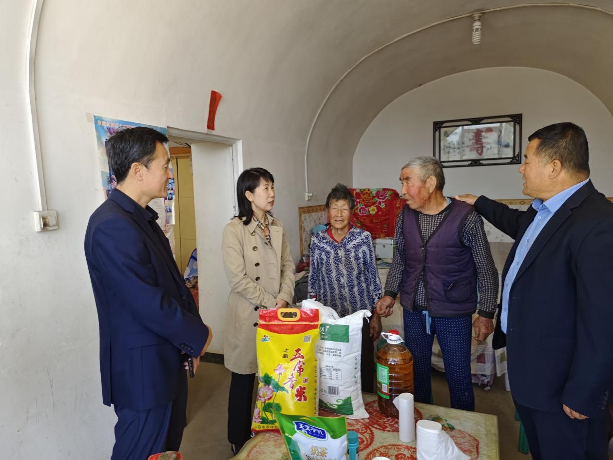 三位驻村干部的陪同下,入户看望周贵兴、曹录山两户大病脱贫户,并送去米面油等慰问品。在两个脱贫户居住的窑洞中,张玉莲书记在查看了他们的衣食以及住宿后,仔细询问了脱贫后家庭的生产生活、收入情况及持续巩固帮扶情况,并询问老人及家人大病手术后恢复情况和用药情况。她叮嘱旁边的驻村队员要更关注这两户,包括村里其他村民家里病人有就医需求及时报告医院,医院会给予全程快捷周到的医疗服务。并嘱咐三位驻村队员要多入户了解并解决边缘户和监测户的生产和实际生活困难,切实做好防返贫监测工作。
