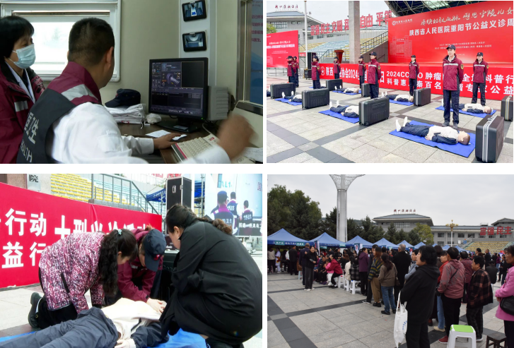 、陕西省抗癌协会泌尿外科、骨科、神经外科、心理科、CT室等18个专业的28名优秀专家及国家紧急医学救援队(陕西)的80余名队员组成的医疗队联合开展了大型公益义诊活动。各位专家详细询问病情,仔细观阅片子,为患者提供各类疾病的专业诊断及治疗建议、疾病咨询服务,普及急救知识,手把手教授徒手心肺复苏及AED的使用方法等,切实将优质医疗资源送到基层百姓身边。活动同时设置有奖问答环节,以轻松愉悦的形式宣讲健康理念,科普健康知识,让健康知识深入群众心中。义诊共计接待患者956人,免费项目抽血化验127人、B超检查61人、血糖监测600人、CT拍片70人,急救知识培训64人,健康宣教303人,获得了黄陵县群众的广泛赞誉。黄陵县委书记刘矿平现场看望慰问了义诊专家,参观了陕西国家救援队移动医院,并与就诊患者进行了细致的交流谈心,对此次义诊活动成效给予了高度肯定。专家们同时在县医院举行了学术讲座、教学查房活动。