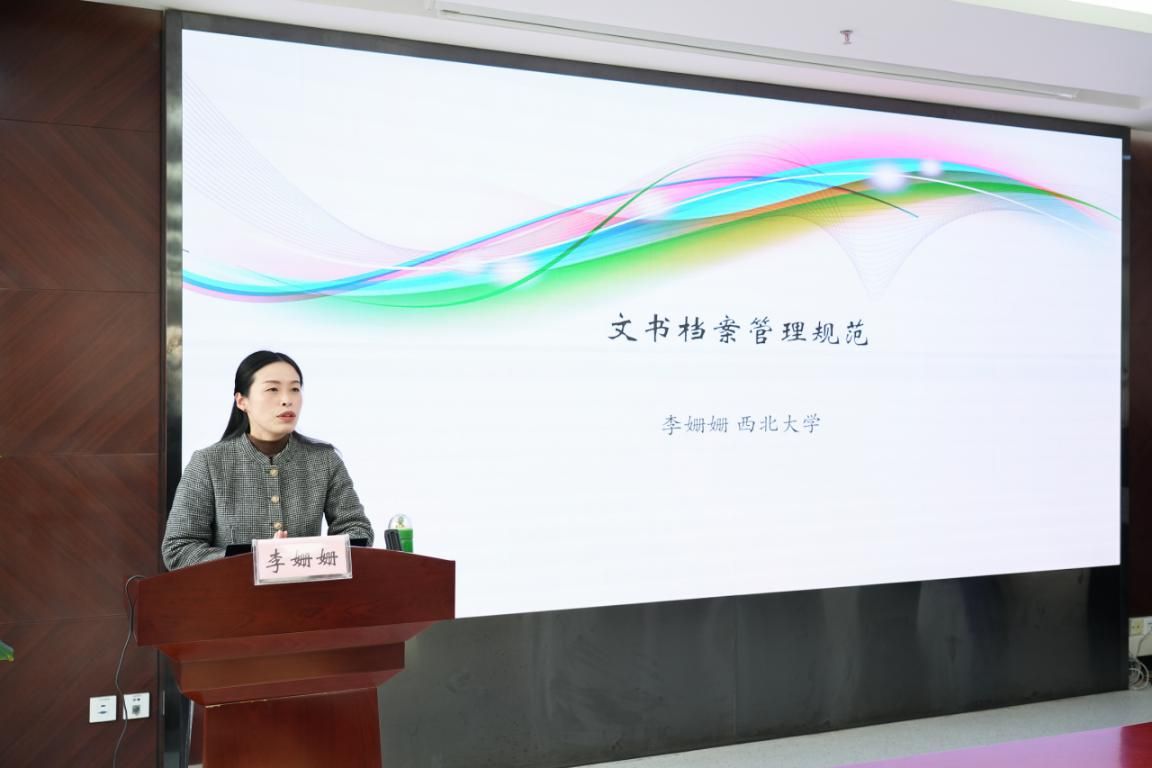 为进一步提升医院档案管理水平,促进医院档案精细化、规范化管理,确保档案的完整性、安全性、可追溯性。11月6日下午,在宋张骏院长的安排下,院长办公室特邀西北大学公共管理学院李姗姗副教授来院做档案管理规范专题培训,全院各级行政管理部门近百人参加。院长办公室张真妮主任主持。