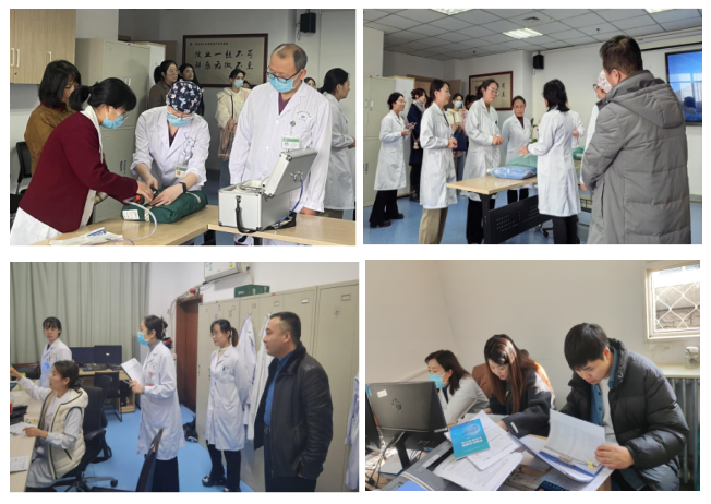 妇产科产科专业刘晓琴主任从医院母婴保健技术服务开展情况、妊娠风险评估管理、危重孕产妇管理、“三病”管理、“两免”项目等方面进行汇报。公共卫生科王媛主任从预防接种、传染病管理、健康教育促进工作、《出生医学证明》管理工作、严重精神障碍发病上报工作、放辐射职业防护工作、疾控监督工作方面进行了翔实的汇报。检查组专家分组通过查阅资料、实地查看、观摩急救演练及询问患者等方式,对三级片
