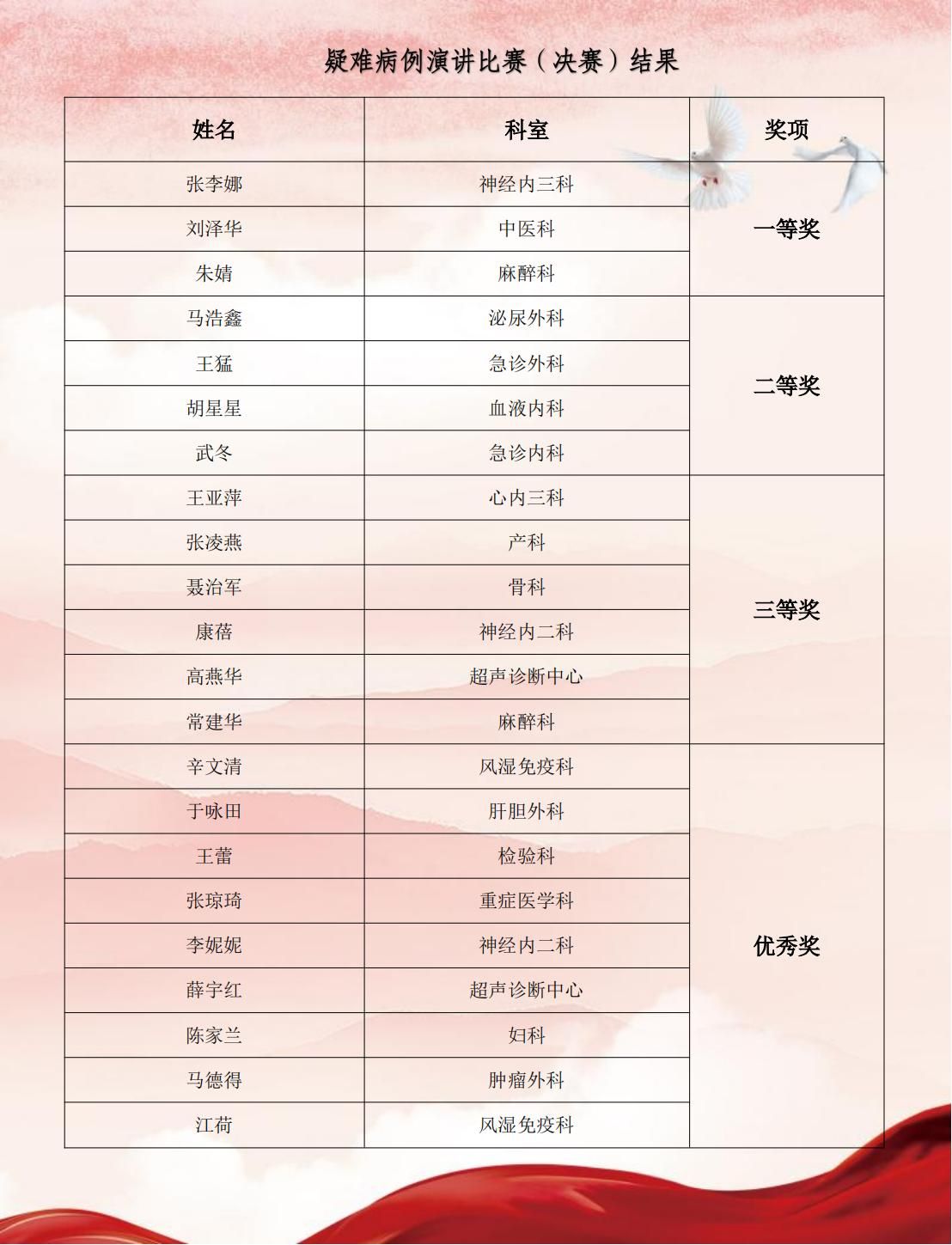不同学科医师风采。最终病案中心苏晓东宣读了获奖名单。