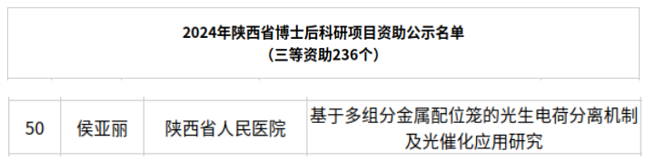 博士后科研工作站获批设站资助项目,资助经费为20万元,侯亚丽博士后获批科研资助项目,资助经费为5万元。
